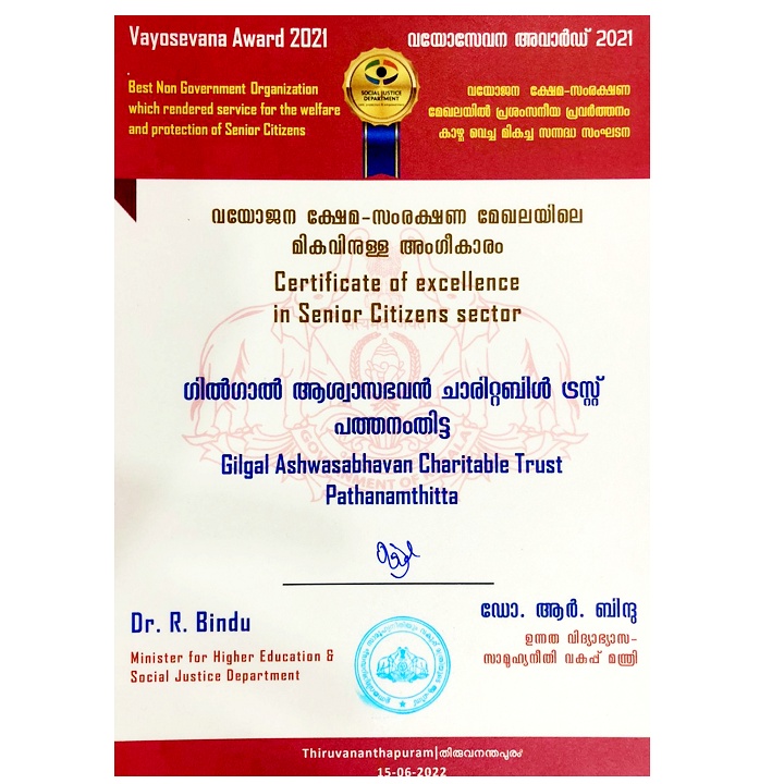- THE SENIOR CITIZEN VAYOSEVANA KERALA STATE AWARD 2021